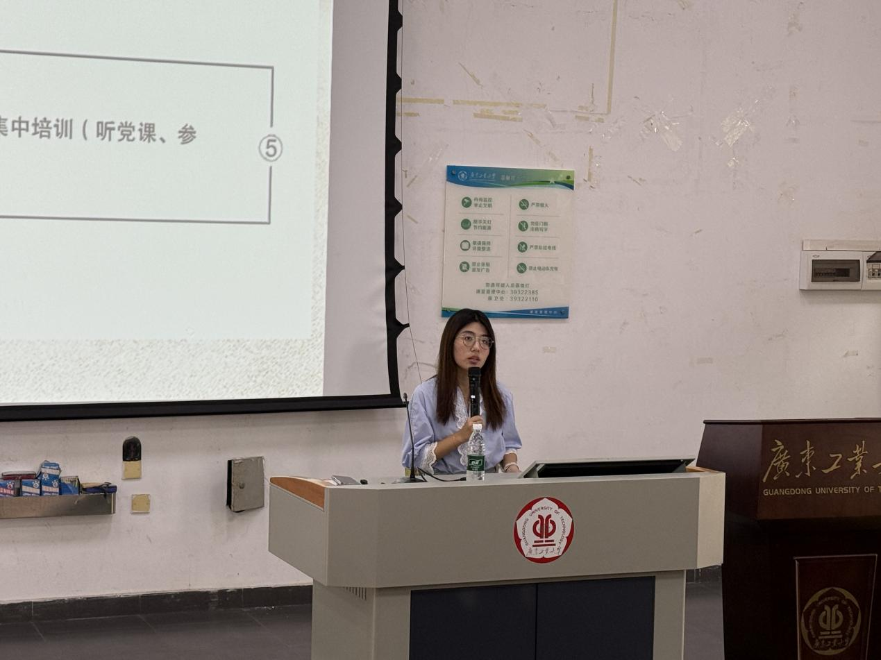 庄丽贤详细介绍了入党申请、积极分子、发展对象、预备党员等四个阶段的具体流程与申请条件,强调学院党员发展的重要节点。她鼓励同学们端正入党动机,严格履行程序,积极向优秀党员榜样学习,不断提升自我,实现全面发展,主动服务集体,积极向党组织靠拢。