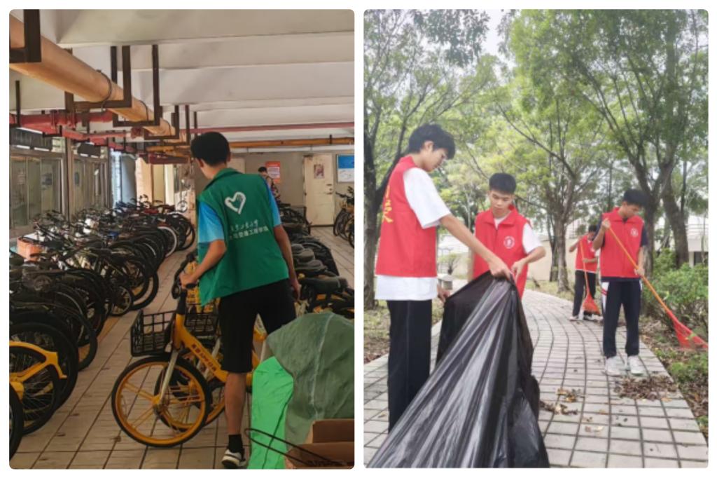 在校内,志愿服务与劳动教育紧密结合,多点开花。本学期,学院累计开展“和美社区,从我做起”校园环境清扫和设施维护活动5场、“共建美丽校园”劳动育人活动7次,参与志愿者近500人次,以劳动汗水浇灌校园文明。此外,累计300人次参与的单车助摆活动,更是将志愿服务融入日常,于细微处彰显主人翁精神,共同营造了整洁、和谐、有序的校园环境。