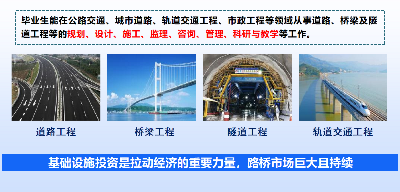 选择广工大土木工程“桥梁与隧道工程”方向,就是选择站在国家基础设施建设的最前沿!这里有一流的平台、顶尖的导师、丰富的资源和广阔的前景。期待怀揣桥梁与隧道梦想的你,加入广工土木大家庭,与我们一同“筑”力中国建造,“隧”通美好未来!